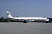 Misr Overseas Airways Boeing 707 at Basle Airport in 1986.