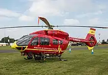 Emergency air ambulances are generally helicopter based, and used to respond to medical emergencies in support of local ambulance services. In England, Wales, and Northern Ireland, all of these services are charitably funded, and either directly owned by the charity, or operated under contract with a private provider.[1] The ambulance staff and doctors crewing these flights are generally seconded from the local NHS ambulance service and NHS hospitals. In Scotland, there is the only publicly-funded air ambulance service, with the Scottish Ambulance Service operating two Airbus Helicopters H145 helicopters and two fixed wing aircraft in this role, alongside two charity-funded Eurocopter EC135 helicopters, operated by Scotland's Charity Air Ambulance.