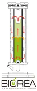 The only energy required is provided by compressed air.[1] This air is usually compressed by a compressor or a blower. The air is injected in the lower part of a pipe that transports a liquid. By buoyancy the air, which has a lower density than the liquid, rises quickly. By fluid pressure, the liquid is taken in the ascendant air flow and moves in the same direction as the air. The calculation of the volume flow of the liquid is possible thanks to the physics of two-phase flow.