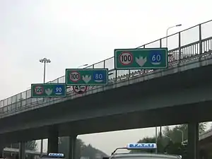 Leftmost lane: minimum 100 km/h, maximum 120 km/h. Other lanes: minimum 60 – 80 km/h, maximum 100 km/h.