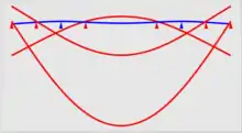Supporting a uniform beam at the Airy points produces zero angular deflection of the ends.[2][3] The Airy points are symmetrically arranged around the centre of the length standard and are separated by a distance equal to