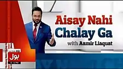 Aisay Nahi Chalay Ga (Urdu: ایسے نہیں چلےگا)[lower-alpha 1] is a Pakistani current affairs and political talk show, hosted by Aamir Liaquat on Bol News. The show covers top stories and current affairs in Pakistan. It airs every Monday to Friday at prime time from 10:00pm to 11:00pm PST, with repeat telecasts at 01:00am the following day.[1][2][3][4]