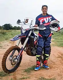 Aishwarya Pissay (born 14 August 1995) is an Indian circuit and off-road motorcycle racer. She has become the first-ever Indian motorsports athlete to win a world title. The TVS talent participated at the FIM Bajas World Cup and secured the 1st place in the women's category and 2nd in the junior's category. She is the first Indian woman to win 5 FMSCI National Rally titles. She started with Circuit Racing winning Honda one-make and TVS one-make titles and went on to win multiple Indian National Rally Championship (INRC - 2w) titles before moving to bigger cross-country rallies.