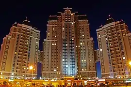 On September 11, 2007, President Nursultan Nazarbayev started the Aktau city project in order to develop tourism and attract investment.[15] A totally new city was to have been built to the north-west of the current city with 4 million square meters of new residential and business buildings. The architecture style would have been derived from UAE's construction experience under the patronage of Sheikh Abdullah ibn Zaid Al Nahayan. In August 2013, the project was called off.[16]
