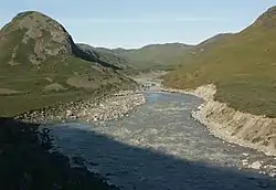 Akuliarusiarsuup Kuua (Danish: Sandflugtdalen) is a river and valley of the same name in the Qeqqata municipality in central-western Greenland. Its source is the meltwater outflow from Russell Glacier, an outflow of the Greenland ice sheet. The river is a tributary of Qinnguata Kuussua, the main river in the Kangerlussuaq area. For most of its run, the river flows very slowly through the sandur basin of the valley,[1] forming meanders amongst large fields of glacial silt quicksand. The climate is polar continental, with the area receiving very little rainfall.[2]