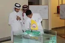 Any student at a Qatari secondary school (independent and international) is eligible to participate. Faculty members train and mentor the students to help develop their critical thinking, problem-solving, and teamwork skills. Students, in teams, formulate their own research questions related to materials science; build a research plan; investigate, using the CAM's instrumentation. They report their findings in a public forum, evaluated by representatives from business and industry.[10][11][12][13][14][15]