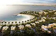 Although still under development, at full operation, it is expected to host up to 20 thousand people in hotels and other facilities, with an estimated foreign investment starting at Dh19 billion.[3][4] The Island now houses 45% of the total 5-star hotel rooms in the Emirate through its 3 resorts - the Rixos Bab Al Bahr, DoubleTree by Hilton Resort & Spa Marjan Island,[5] and Al Marjan Island Hotel & Spa; capacity will exceed 10 thousand rooms by 2017 in the Emirate, half of it in the Island.[6][7][8]