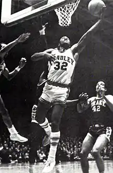 He was given offers to attend USC and Notre Dame,[4] but he chose to attend Bradley University as a basketball and baseball player. Smith spent four years at Bradley, though his time in college was interrupted by a two-year stint in the United States Army.[5] As a college basketball player, he scored over 1,000 points for Bradley and was named first team All-Missouri Valley Conference in 1971 during his senior season.[5] His college success was honored in 2004 when he was selected to Bradley's All-Century team.[4]
