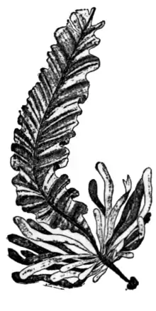 Alaria is a genus of brown alga (Phaeophyceae) comprising approximately 17 species. Members of the genus are dried and eaten as a food in Western Europe, China, Korea, Japan (called sarumen), and South America.[1] Distribution of the genus is a marker for climate change, as it relates to oceanic temperatures.[2]
