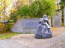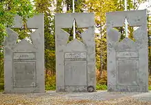 The Alaska Veterans Memorial is an outdoor memorial grove in Denali State Park in Interior Alaska. The memorial honors Army, Navy, Air Force, Marine Corps, Coast Guard, Alaska National Guard, and Merchant Marine veterans from Alaska,[1][2] as well as specific Alaskans who were awarded the Medal of Honor. There are also small memorials to the passengers and crew of military plane crashes in Alaska. The site was selected because of the scenic beauty of the area and its location between Alaska's two largest cities. On a clear day visitors can see Denali from just outside the memorial.[3][4] It is 147 miles (237 km) from Anchorage and 214 miles (344 km) from Fairbanks, on a hill above the Byers Lake campground.[3] During the main visitor season (May–August) there is a staffed visitor center and bookstore.[5][6] The main memorial alcove was constructed in 1983, Governor Bill Sheffield, himself a veteran, dedicated the site in 1984.[3]