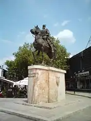 The Albanian National movement first emerged in Kosovo through the League of Prizren with Albanian delegates in attendance from Macedonia that attempted to prevent Albanian inhabited territories from being awarded to neighbouring states.[2][3] Muslim Albanians in Macedonia during the Ottoman period were either mainly supporters of the Ottoman Empire or some like Albanian parliamentarians critical of Ottoman measures aimed at curtailing socio-cultural Albanian expression.[4][5] The province of Monastir was an important centre for the Bulgarian IMRO and the beginnings of an emerging Albanian nationalist movement among its majority Muslim population appeared due to frustration with Ottoman authorities and their ineffectiveness to protect them.[6] Prominent individuals within the Albanian movement from Monastir province believed that joint action with the Young Turk movement (CUP) would improve their situation and the majority membership of the Albanian committee were also CUP members.[6] In 1908, an Ottoman officer of Albanian origin Ahmed Niyazi Bey along with Albanians from the region instigated the Young Turk revolution (1908).[7]