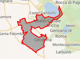 Albano Laziale (IPA: [alˈbaːno latˈtsjaːle];[3] Romanesco: Arbano; Latin: Albanum) is a comune in the Metropolitan City of Rome, on the Alban Hills, in Latium, central Italy. Rome is 25 kilometres (16 mi) distant. It is bounded by other communes of Castel Gandolfo, Rocca di Papa, Ariccia and Ardea. Located in the Castelli Romani area of Lazio. It is sometimes known simply as Albano.