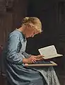 During his studies, Anker produced a series of works with historical and biblical themes, including paintings of Luther and Calvin.[1] Soon after returning to Ins, though, he turned to what would become his signature theme: the everyday life of people in rural communities. His paintings depict his fellow citizens in an unpretentious and plain manner, without idealising country life, but also without the critical examination of social conditions that can be found in the works of contemporaries such as Daumier, Courbet or Millet.[1] Although Anker did paint occasional scenes with a social significance, such as visits by usurers or charlatans to the village, his affirmative and idealistic Christian world-view did not include an inclination to issue any sort of overt challenge.[1]