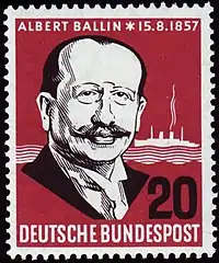 The SS Albert Ballin was named in his honor, as is the Ballindamm, a street in central Hamburg. A postage stamp was issued by the Deutsche Bundespost in 1957 in commemoration of Ballin's 100th birthday.