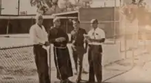 After the war, Fr. Albert came back to the Fruitvale Neighborhood of Oakland, where he requested from the Provincial to go back with the Mescalero.[4] The Provincial requested he go to Phoenix. Fr. Al requested that he "be out with the people"[4] and asked Fr. Victor, Pastor of St. Mary's, if there were any Spanish speaking parishes in the area. Fr. Victor responded that there were a group of 64 people down on 16th Street south of the railroad tracks, but told Fr. Al that they could go to the Basilica, a nearly two mile walk. After insistence, Fr. Al began serving the people near 16th Street, what was known at the time as the Golden Gate Barrio, and wrote the Provincial asking if he could live in the barrio for one year, after Fr. Victor denied the initial request. The Provincial granted Fr. Al to live in Golden Gate, where he spent every Monday, Tuesday, Wednesday, and Thursday visiting the families, noting that there were 8,000 Catholics in the barrio, not 64 Catholics as Fr. Victor had predicted.[4] Around 1950, Victor Stinger donated a small lot at 17th and Sherman Streets in Phoenix, AZ to be used for Catholic mass for the residents of the Golden Gate Barrio and its surrounding barrios.[5] The original structure was a ramada with a dirt floor and a palm thatch roof.[6] Around 1952, Father Al began working within the community and requested that he remain in the barrios and not be moved around like "all the others" until he "completed his work".[5] Father Al held his first mass under the ramada on August 10, 1952 and held mass there for two and one half years.[5]