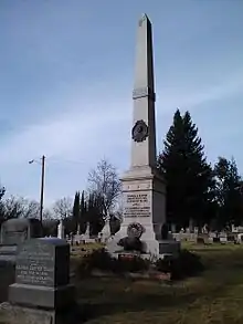 In 1887, the Grand Parlor voted to assess each member fifty cents to raise money for a monument on Winn's grave. The monument, erected in 1888 and restored in 2003 by Sunset Parlor #26, is a granite shaft fifteen feet high in the Pioneer Section of the Sacramento Historic City Cemetery. It is the tallest monument in the cemetery and a fitting tribute to the founder of the Native Sons of the Golden West.[1]