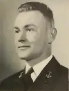Vorse was born 9 August 1914 to Albert Ogden Vorse and Emma Yarnall Vorse. He was the eldest of three children, having both a brother, Frank Miller Vorse, and later a sister, Mary Ellen Vorse.[1] Albert O. Vorse Sr. graduated from Yale Forest School in 1910 and worked as a forester for the landscape architecture firm Peters, Byrne and Company around the time of Albert Jr.'s birth.[2] Albert Vorse Jr. entered the Phillips Academy Andover in 1929. While attending the prestigious prep. school, Vorse was on the wrestling, swimming, football and track teams.[3] He graduated as a senior in 1933 and went on to the United States Naval Academy at Annapolis, Maryland. "Scoop" is again portrayed in football gear in his 'Lucky Bag' senior yearbook.[4]