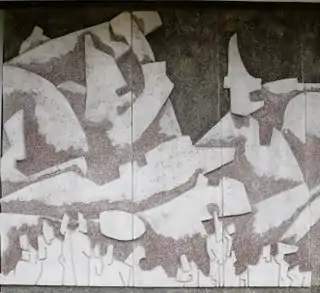 Albert Vrana (1921–1994)[1][2] was an American sculptor who is best known for his mid-twentieth century monumental architectural sculptures done in the Modernist style, using novel materials, such as ferrocement, and new techniques, such as sand casting using plastic Styrofoam molds to shape sculptural concrete panels and metal sculptures.[3][4][5][6]