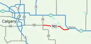 Alberta Provincial Highway No. 901, commonly referred to as Highway 901, is a 40-kilometre (25 mi) in southern Alberta, Canada that extends Highway 22X from Highway 24 to Highway 1 (Trans-Canada Highway) near Gleichen.[2]