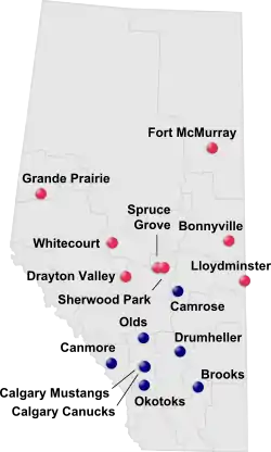 - Olds Grizzlys since 1981, originally Taber Golden Suns.