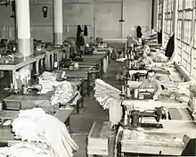 In 1939–40, a $1.1 million redevelopment was begun, including construction of the New Industries Building, a complete overhaul of the power house with a new diesel engine, the building of a new water tower to solve the water storage problem, new apartment blocks for officers, improvements to the dock, and the conversion of D-block into isolation cells.[7] The changes were completed in July 1941. The workshops of the New Industries Building became highly productive, making Army uniforms, cargo nets, and other items in high demand during World War II. In June 1945, it was reported that the federal penitentiaries had made 60,000 nets.[7]