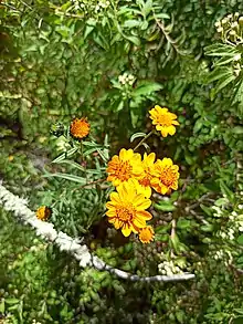 Aldama is a genus of flowering plants in the daisy family. The genus was originally described to include one (later two) species of subtribe Helianthinae that were characterized by having pales that tightly enclosed the cypselae (achenes) (see Feddema, 1971).[1] Recent molecular phylogenetic studies (Schilling and Panero 2011) [2] showed that these species are within a large group that were formerly classified in the genus Viguiera, and Aldama has been expanded to include a total of 118 species. Aldama is characterized by having a perennial herbaceous habit, a pappus usually of awns and scales, and a multiseriate involucre.