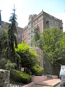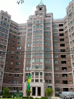 Built in the Jacobean Revival style, Alden Park Manor was founded and built in 1926. The complex has three sets of towers - the Manor, Kenilworth, and Cambridge buildings. Designed by Edwyn Rorke and developed by Lawrence Jones, it was built in a park-like setting on thirty-eight acres that had been the Justus C. Strawbridge estate. It was the first co-operative apartment complex in Philadelphia, although it now operates only as rentals.
