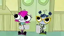 Wasson formed Maggie's character design and supported the use of Adobe Flash for animating the series. He told Animation Magazine that he was convinced Flash was a "good way to go" as he had had previous experience with the program, such as commercials and short films.[7] The series became Disney's first to be fully animated in Flash.[8] Following the cancellation of Kids' WB's ¡Mucha Lucha!, many animators from that series were hired to work on The Buzz on Maggie.[7] For the character designs, Wasson was heavily influenced by early cartoon shorts by Tex Avery, Warner Bros. and Walt Disney. He noted that the characters in The Buzz on Maggie have "a lot of 1930s touches" and wear white gloves, which is a direct homage to the cartoon shorts.[7] The characters also have anime-inspired designs with oversized heads and large eyes.[9] Wasson stated that the concept of Maggie living in a dump gave him a "lot of visual opportunities".[7] Jorge Gutierrez supervised the character design and Roman Laney supervised location and prop design in addition to background paint. The animation was done by Bardel Entertainment and Future Thought Productions.[2][10]