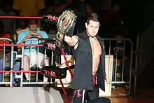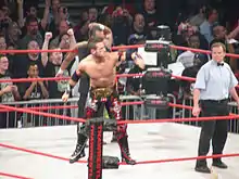 At Hell Freezes Over on January 14, 2006, Shelley teamed up with Rave to defeat the duo of Claudio Castagnoli and Azrieal.[22] Later that evening, Prince Nana offered to buy the ROH World Championship from Bryan Danielson after his successful defense against Chris Hero.[22] When Danielson refused to sell it, he was attacked by The Embassy with Shelley giving him a Sliced Bread #2 claiming it was his "Kryptonite" as Danielson's long–time rival and former Embassy member, Spanky, utilized the move to defeat him on numerous occasions.[22][23] The following show, The Embassy of Shelley, Rave and Abyss won the 2006 Trios Tournament defeating Generation Next of Jack Evans and Matt Sydal and their partner Jimmy Yang in the finals, and thus each wrestler was granted any match they wanted, with Shelley and Rave both announcing they wanted a shot at the ROH World Championship.[23] Shelley was originally scheduled to face Danielson for the title on February 11, but a severe snowstorm hit the Northeast and Shelley was told by Total Nonstop Action Wrestling to fly back early to Orlando, Florida so he would not miss their pay-per-view the following day.[24] Shelley would eventually get his title shot one month later at Arena Warfare, but was unable to defeat Danielson.[25]