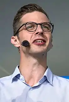 In the 2019 general election, Vanopslagh was elected to the Folketing.[5] The election was catastrophic for the Liberal Alliance, which lost nine of thirteen seats and its leader Anders Samuelsen failing to be reelected. Following the defeat, Samuelsen resigned as leader of the party, and was succeeded by Vanopslagh.[6][7][8]
