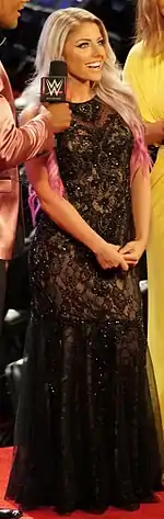 Alexis Cabrera[6] (née Kaufman; born August 9, 1991) is an American professional wrestler. She is currently signed to WWE, where she performs on the Raw brand under the ring name Alexa Bliss. In 2013, Bliss signed a contract with WWE and was assigned to their Performance Center and developmental brand NXT. She made her main roster debut on the SmackDown brand in 2016, later becoming a two-time SmackDown Women's Champion and the first woman to hold the title twice.