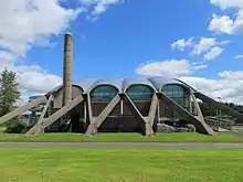 One of Buchanan Campbell's most notable works was the Dollan Baths complex in East Kilbride[2] (opened 1968 and named after former Lord Provost Sir Patrick Dollan). Influenced by the Beaux-Arts style, his time with Coia and works of Pier Luigi Nervi and Kenzo Tange, the significance of Buchanan Campbell's Dollan Baths was recognised when Historic Scotland listed it as Category A in 2002.