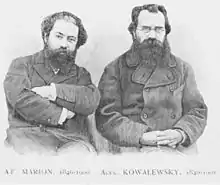 Alexander Onufrievich Kovalevsky (Russian: Алекса́ндр Ону́фриевич Ковале́вский, 7 November 1840 in Vorkovo, Dvinsky Uyezd, Vitebsk Governorate, Russian Empire – 1901, St. Petersburg, Russian Empire), was a Russian Imperial embryologist, who studied medicine at the University of Heidelberg and became professor at the University of St Petersburg.[1][2][3][4] He was the brother of paleontologist Vladimir Kovalevsky, and the brother-in-law of the mathematician Sofya Kovalevskaya.