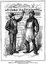 Mackenzie's first biography in 1892 referred to him as Canada's Stainless Statesman.[6] He was a devout Baptist and teetotaller who found refuge in, and drew strength from, his family, friends, and faith.[7][2] He was also a loyal friend and an incorrigible prankster (stuffed chimney on young in-laws; rolled boulder down Thunder Cape towards friend A. McKellar; burned Tory campaign placards in hotel woodstove early in morning).[8] Unpretentious and down to earth,[9] his public official austerity was in striking contrast to private compassion and giving nature.[10] He was the soul of honour and integrity,[11] a proud man who sought no recognition or personal enrichment and accepted gifts reluctantly.[12] He preferred to follow than lead (unreferenced – many times he refused leadership offers) and often found duty outweighed heavy burden of office.[13] He was uncompromising on his principles, perhaps too much so.[14] An historian at the time said, "He was, and ever will remain, the Sir Galahad of Canadian politics."[15]