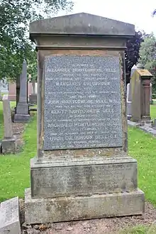 He died on 19 January 1866. He is buried with his family in the south-east section of the original part of Grange Cemetery in south Edinburgh. The grave faces south onto the east-west division line.