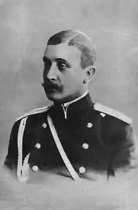 He was educated at home and then at the Page Corps military academy, becoming camera-page in October 1889. With his younger brother Anatoly, he hoped to be commissioned into the Horse Guards, but at the request of the Emperor Alexander III he instead went into the Nizhny Novgorod Regiment of Dragoons. As a headquarters-captain, he was an adjutant to Eugen, Duke of Leuchtenberg.[2] In 1896 he was awarded the Order of St Stanislav (third class). In 1901, for family reasons, he resigned his commission.[1]