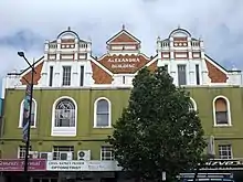 The Alexandra Building is a two-storeyed masonry building with an elegant street facade on the western side of Ruthven Street in Toowoomba. It is located on a long and narrow site and consists of a 1902 building (hall and two retail spaces) with 1905 rear addition (former pavilion). Ancillary outbuildings and decks, and an adjoining c.1930s-1940s buildings are located at the rear of the site.[1]