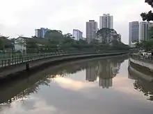 Alexandra Canal is one of the upper reaches of the Singapore River and Sungei Pandan, becoming the Singapore River after Kim Seng Bridge.[1] The 1.2 km long canal stretches from Tanglin Road to Delta Road. Reconstruction of Alexandra Canal between Tanglin Road and Kim Seng Road took place from 1997 to 2008 to improve the structural condition of the canal and to alleviate flooding in the catchment. In 2011, a 250-metre stretch of Alexandra Canal, between Zion Road and Kim Seng Road, was reconstructed to improve drainage and prevent floods.[2] A 200m stretch of the open waterway near Tanglin Road was decked over to create an water cascade and water play area. The deck also provides a point from which the public can have a view of the waterway downstream.