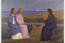 Alexandre Séon (1855, Chazelles-sur-Lyon, Loire – 1917, Paris) was a French Symbolist artist, illustrator and decorator. Séon studied at the Beaux-Arts of Lyon and Paris, becoming a student of Puvis de Chavannes in 1891, with whom he later collaborated.[1] He was closely associated with Joséphin Péladan and his Salon de la Rose-Croix, and designed the frontispiece for Péladan's 1891 novel l'Androgyne.[2]