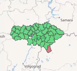 Alexandrovo-Gaysky District (Russian: Алекса́ндрово-Га́йский райо́н) is an administrative[1] and municipal[6] district (raion), one of the thirty-eight in Saratov Oblast, Russia. It is located in the southeast of the oblast. The area of the district is 2,700 square kilometers (1,000 sq mi). Its administrative center is the rural locality (a selo) of Alexandrov Gay.[2] Population: 16,855 (2010 Census);[4] 17,763 (2002 Census);[9] 17,003 (1989 Census).[10] The population of Alexandrov Gay accounts for 57.7% of the district's total population.[4]