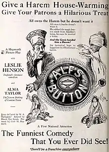 Alf's Button is a 1920 British silent comedy film directed by Cecil Hepworth and starring Leslie Henson, Alma Taylor and Gerald Ames. It was based on the 1920 novel Alf's Button by William Darlington. The film is about a British soldier who discovers a magic coat button which summons a genie to grant his various wishes. It was remade as a sound film in 1930.