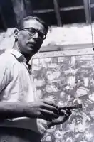 ![]() Alfred Janes c. 1960 at his studio in Nicholastan Hall, Gower, Wales | |
