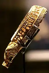 - The Bowleaze Jewel – made of gold, decorated with beaded wire, granulation, and with a blue glass stone in the middle. It was found at Bowleaze Cove near Weymouth, Dorset and is now in the British Museum.[18]