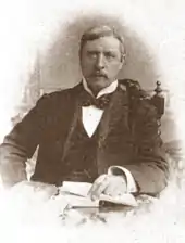 When Wyndham was preparing the London production of a third farce – Betsy (1879), F. C. Burnand's adaptation of Bébé – he cast Maltby as the eccentric tutor.[5] The play was a success, and Maltby was highly praised in the press. He played the part in several revivals of the piece, and in 1896 The Sketch said of him, "No playgoer will ever call to mind the name of Mr. Alfred Maltby without thinking of his wonderful performance of Samuel Dawson, B.A., the private tutor in Betsy".[10] For the first production, Maltby contributed further by writing a two-act curtain raiser, a "comic drama" called Jilted, [11] which The Era later described as one of his cleverest achievements as a writer".[5] At the Criterion and later, Maltby played his eccentric old gentlemen characters in such plays as Truth, The Candidate, The Man with Three Wives, My Artful Valet and others "too numerous to mention".[10] The Sketch reviewer also noted that Maltby had "severe epidemics as regards the various kinds of old gentlemen he is called upon to portray ... at one time he had a very violent attack of fiery old colonels; at another, it was plausible scoundrels; at another, Members of Parliament."[10]