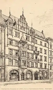 - 1889 –1891: building housing a soup kitchen (Volkscafé- und Speisehallen-AG), Neue Schönhauser Straße, Berlin