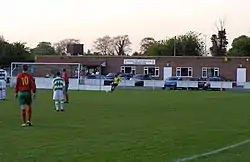 The ground has a covered stand which occupies half of one side of the western end of the ground with seating for 85.[1] The stand also has room for around 250, plus a few benches.[1] The ground has a concrete path around the entire pitch. The Clubhouse is on the northern end of the ground.[1] Floodlights were added in 1996.[2] The ground was refurbished in 2010.[3]