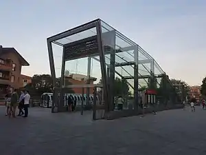 Starting in 1947, the narrow-gauge railway companies that operated within the Bilbao metropolitan area were merged to become Ferrocarriles y Transportes Suburbanos de Bilbao S.A. (Railways and Suburban Transports of Bilbao), shortened FTS and the first precedent of today's Metro Bilbao.[3] In 1977, the FTS network was transferred to the public company FEVE and in 1982 to the recently created Basque Railways. In the decade of 1990s, it was decided the station, just like the most of the former railway line, would be integrated into Metro Bilbao's line 1. The rail line was then put underground and a new also underground station was built, opened in 1995.