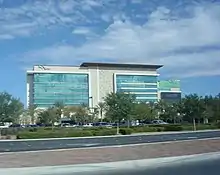 The resort's 16-screen all-digital movie theater, operated by Regal Cinemas and measuring 81,000 sq ft (7,500 m2), held its grand opening on November 14, 2008, after two days of bargain previews.[20] The resort's 3,500 sq ft (330 m2) Access Showroom, designed by Scéno Plus, also opened on November 14, with a performance by Smokey Robinson. The showroom included seating for 600 people, and could be arranged into a 340-seat lounge.[21][22] The hotel also opened on November 14, with 202 rooms and 9 suites,[7] while a planned future phase would add a second hotel tower for an additional 202 rooms.[9] Similar to the Green Valley Ranch arrangement with The Greenspun Corporation, Station Casinos received a management fee of two percent of revenues for Aliante Station, and five percent of its cash flow.[23]