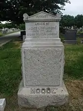 John Oliver Moqué later married Mary Ida Cole. He died on January 13, 1942. Although his name and birth year were listed on Alice Lee Moqué's headstone, he was buried with Mary Ida Cole in Fort Lincoln Cemetery, Brentwood, Maryland.[50]