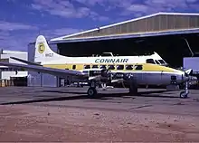 Tragedy struck the airport again over four years later on 5 January 1977, when a former employee of Connair, Colin Richard Forman,[7] flew a stolen aircraft into the Connair offices (formerly Connellan Airways) located at the airport, killing himself and three of the airline's employees.[8] A woman working in the offices suffered severe burns and died several days later.[9]